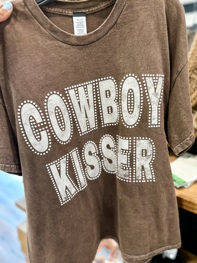 This brown mineral wash tee brings the perfect mix of vintage style and western sass. Featuring a worn-in look and the playful “cowboy kisser” grap...