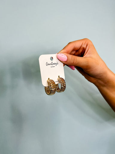 Make a bold statement with the Millie Chunky Earrings. These gold hoops feature a rich, textured finish that catches the light beautifully. These ...
