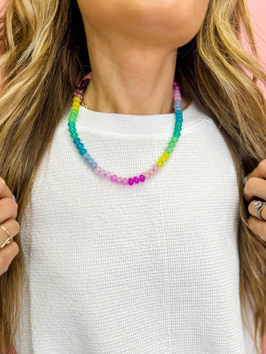 Brighten your look with this vibrant beaded necklace featuring a playful mix of colorful beads. The lightweight design makes it comfortable for all...