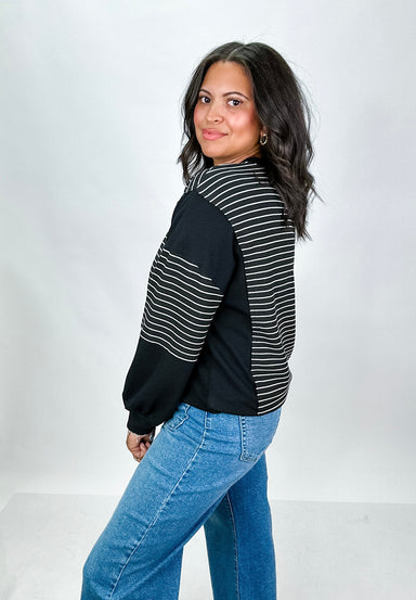 Stay comfortable and stylish with the Blair Striped Pullover. Featuring a classic striped pattern with contrasting panels on the side and sleeves, ...