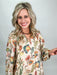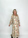 This cream midi dress features 3/4 sleeves and a delicate light floral print, perfect for a subtle and elegant look. Its comfortable length and soft design make it ideal for everyday wear or casual outings.