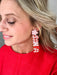 These festive red and pink beaded earrings feature the phrase "Santa" on one ear and "Baby" on the other. Perfect for adding some holiday cheer to any outfit. Made with carefully crafted beads for a unique and eye-catching look.