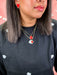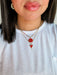 Layered gold plated necklace featuring delicate red enameled pendants that stack beautifully for a modern, dimensional look. The soft white enamel contrasts elegantly against the warm gold plating, creating a refined piece that works as a standalone statement or layered with other favorites. Perfect for adding subtle sophistication to any outfit.