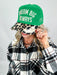 The 'Dream Big Always' Embroidered Trucker Hat features a green corduroy base with cream embroidery. It highlights a cheetah printed brim and detailed embroidery on the sides and brim, offering a unique, casual style perfect for everyday wear.