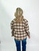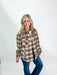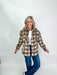 Stay cozy in the Harvest Plaid Jacket, featuring a classic tan, brown, and blue plaid pattern. Designed with convenient shirt pockets, this jacket combines casual style with practical use for everyday wear.