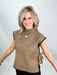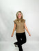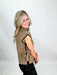 Cozy knit tank in warm brown tones, perfect for layering or wearing solo. Features sleek black trim details and side ties. The sleeveless design makes it versatile for any season, while the soft knit fabric keeps you comfortable all day long.
