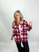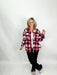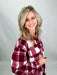 Cozy up in this burgundy and white plaid jacket, perfect for layering through fall and winter. The classic plaid pattern adds timeless style to any outfit, while the structured fit keeps you looking polished. Whether you're heading to the office or out for casual weekend plans, this versatile piece transitions seamlessly from day to night. Soft and comfortable, it's a wardrobe essential that layers well.