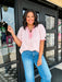 Elevate your wardrobe with this charming Parisian Puff Sleeve Top. Featuring delicate pink and cream seersucker stripes, voluminous puff sleeves, and a classic collar. This offers timeless elegance with a modern twist. Perfect for casual outings or dressed-up occasions, it's designed to flatter with a true-to-size fit.