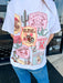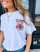 This white graphic tee brings bold western spirit to everyday style. Featuring “the world needs more cowgirls” across the front, it makes a confident statement, while the back showcases a collage of western sayings and vintage-inspired imagery for that true cowgirl feel. Soft, comfortable, and easy to style, it pairs perfectly with denim and boots for a look that’s equal parts classic and fearless