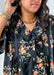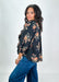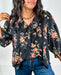 The Onyx Blooms Top features a flattering V-neck and delicate floral print, enhanced by charming ruffles and pintuck details. Its button-up front and cinched wrists add a touch of elegance and comfort, making it a versatile choice for everyday wear.
