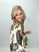 The Ivy Bloom Blouse features a cream base with a charming floral print in navy, rust, and olive tones. It has three buttons down the front for a classic look, making it easy to wear for both casual and dressier occasions. This blouse pairs well with jeans or skirts, adding a subtle touch of color and elegance to your outfit.