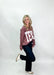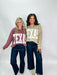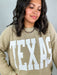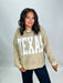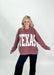 This mineral wash ribbed crewneck sweatshirt features a comfortable fit and a classic design with "TEXAS" printed in bold block letters across the front. Perfect for showcasing your Texas pride while staying cozy in cooler weather.